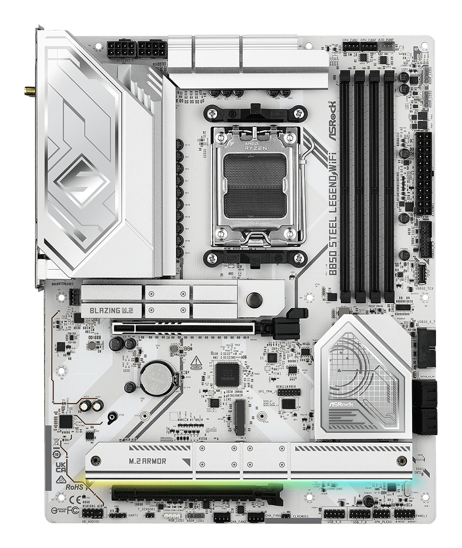 Η ASRock B850 Steel Legend WiFi είναι μια ATX μητρική κάρτα, σχεδιασμένη για χρήστες που θέλουν αξιοπιστία, στιβαρή κατασκευή και προηγμένες δυνατότητες. Βασισμένη στο AMD B850 chipset, υποστηρίζει επεξεργαστές AMD Ryzen τελευταίας γενιάς με το AM5 socket, εξασφαλίζοντας μέγιστη απόδοση για gaming, multitasking και δημιουργικές εφαρμογές.