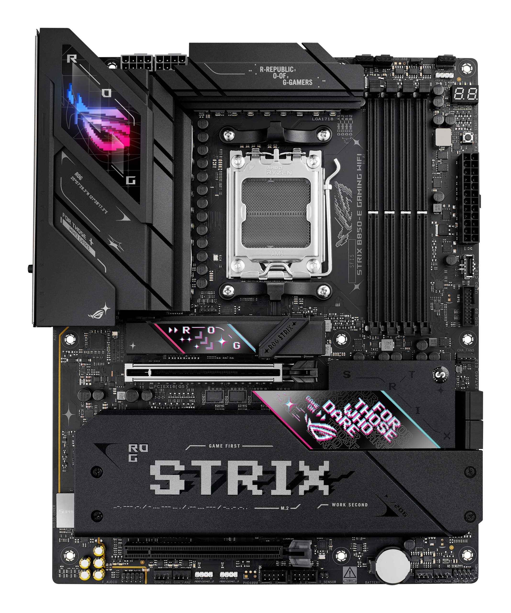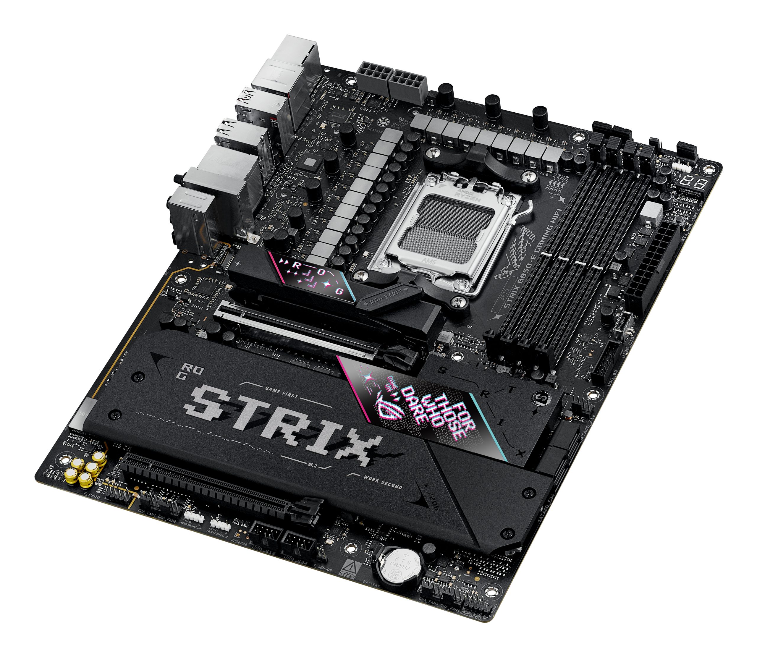 Όταν μόνο η ταχύτερη είναι αρκετή, η μητρική πλακέτα Strix B850 προσφέρει. Με ενσωματωμένο USB 20Gbps Type-C® μαζί με ισχυρές δυνατότητες overclocking¹, με ταχύτερη υποστήριξη μνήμης DDR5 διπλού καναλιού, τεχνολογία AMD EXPO™ και υποστήριξη PCIe® 5.0 τόσο για γραφικά όσο και για NVMe, μπορείτε να παίξετε τα πιο απαιτητικά παιχνίδια και να υλοποιήσετε τα μεγαλύτερα έργα σας με τις επαναστατικές επιδόσεις μιας μητρικής πλακέτας AMD 800-series και επεξεργαστών AMD Ryzen™ 9000, 8000 και 7000 Series.