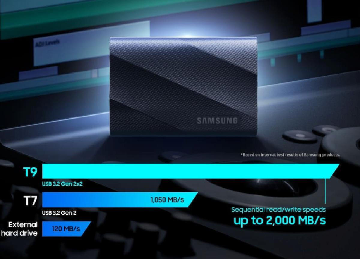Ο Samsung T9 είναι ένας εξωτερικός SSD που προσφέρει εξαιρετική απόδοση και ανθεκτικότητα.