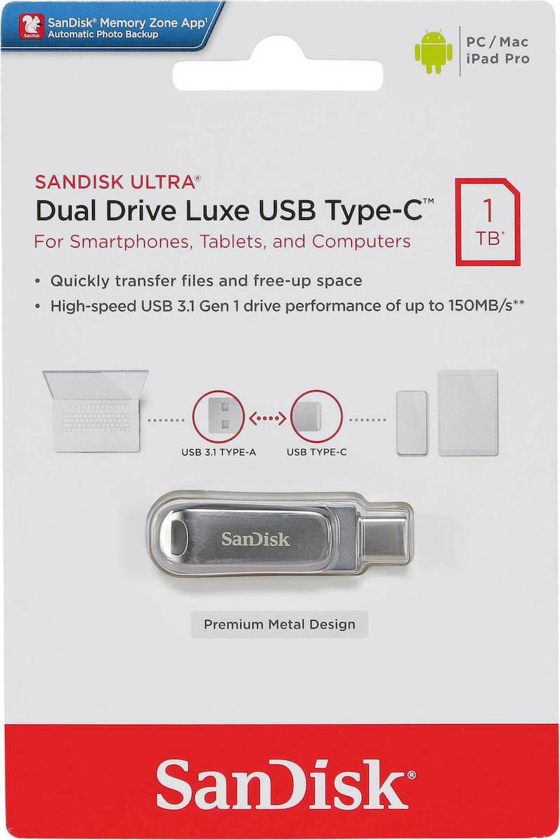 Sandisk Ultra Dual Drive Luxe 1TB USB 3.1 USB-C Ασημί